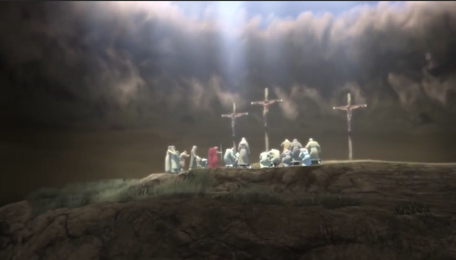 Aztán Jézus felemelték és vártak 6 órán át. Azonban délben teljesen elsötétült az ég és bekövetkezett az amit az Úr mondott: